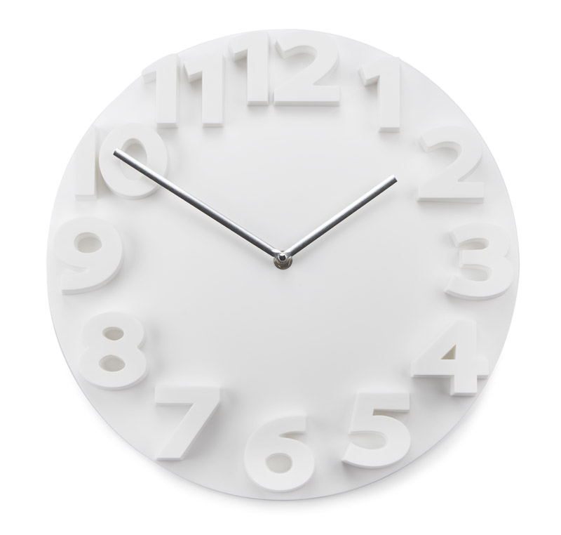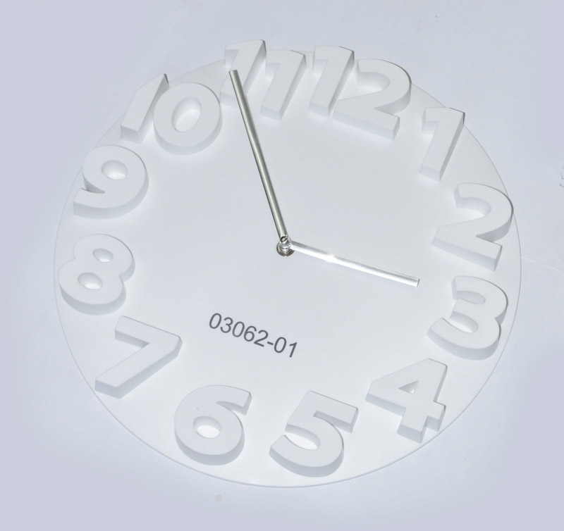 Zegar charakteryzuje się dużymi wymiarami (ø 350 x 30 mm) i wykonany jest z wysokiej jakości tworzywa, co zapewnia trwałość i stabilność. Kolor biały tarczy dodaje klasy, natomiast wypukłe cyfry gwarantują, że godzina jest zawsze doskonale widoczna, co jest komfortowe zarówno w domowych, jak i profesjonalnych wnętrzach.